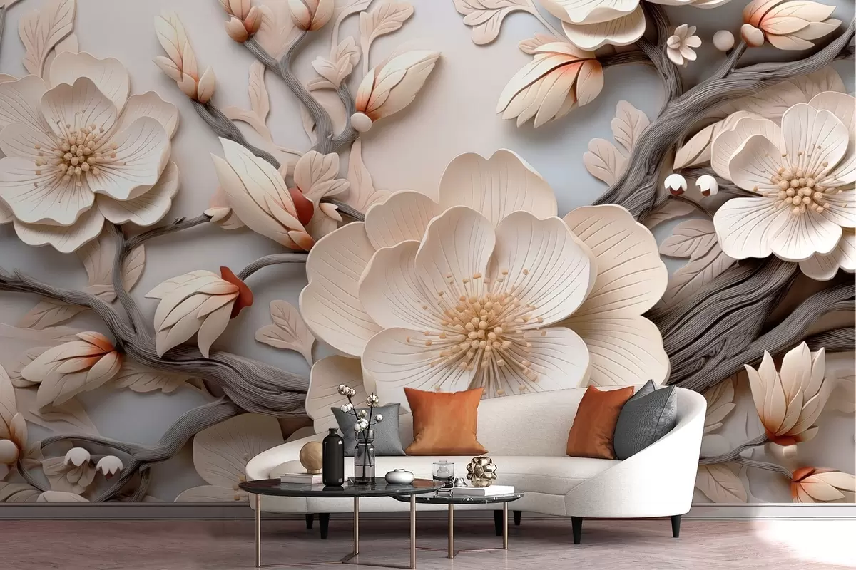Fotomurales Flores y ramas volumétricas en tonos claros Nr. w09272