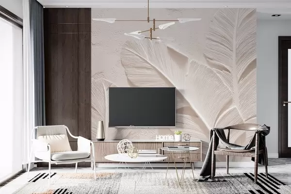 Fotomurales Hojas en relieve en cálidos tonos beige-arena Nr. w09307v1