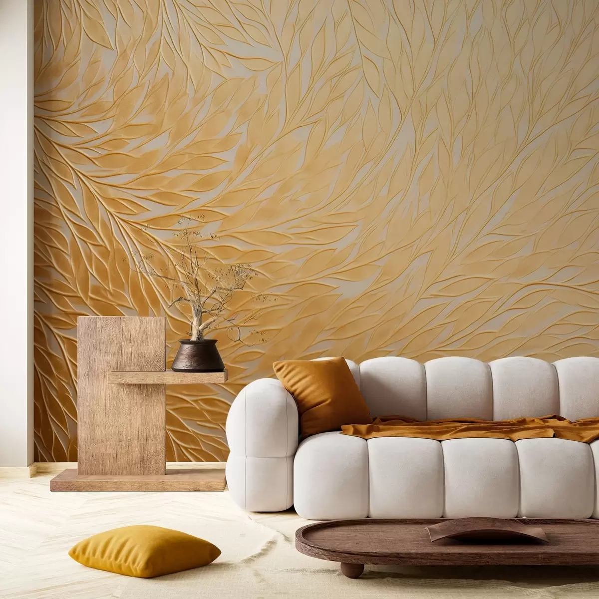Fotomurales Motivo de hojas en relieve en cálidos tonos amarillo miel Nr. w09325