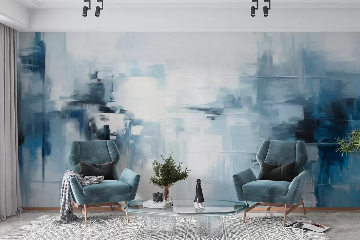 Fotomurales Imitación de pintura abstracta de paisaje con textura y pinceladas azules y blancas, estilo moderno Nr. w09422