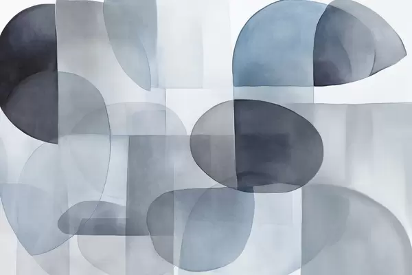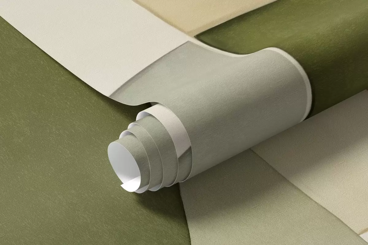 Fotomurales Formas abstractas con textura en tonos verdes y amarillos, colores apagados, composición minimalista, fondo neutro Nr. w09467