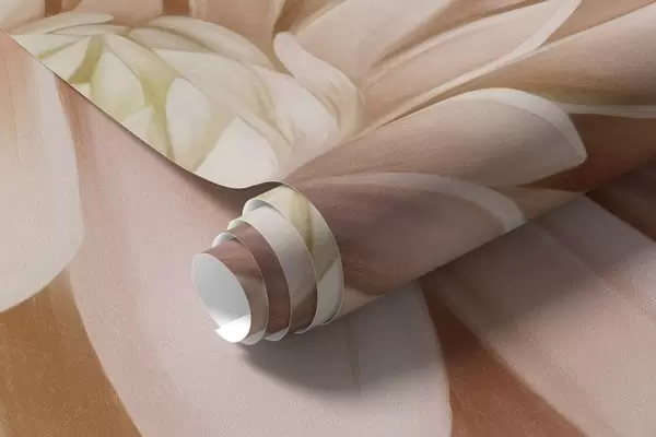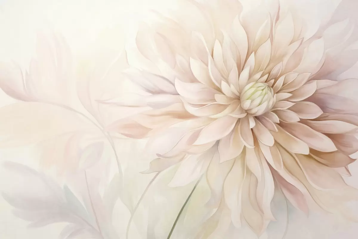 Fotomurales Una flor de dalia rosa claro con muchos pétalos, fondo pastel de textura suave con toques de verde y beige Nr. w09470