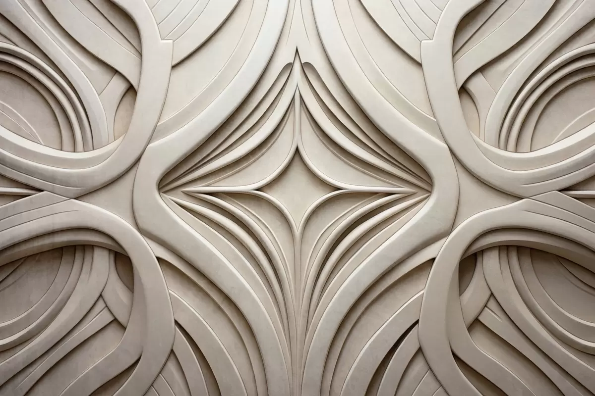 Fotomurales Estampado geométrico abstracto simétrico con textura, color beige claro, estilo art déco, detalles intrincados Nr. w09473