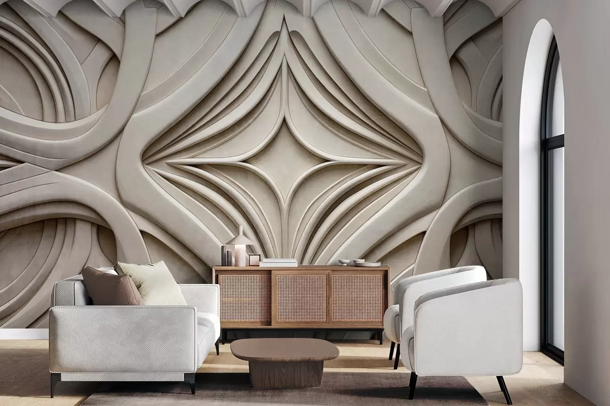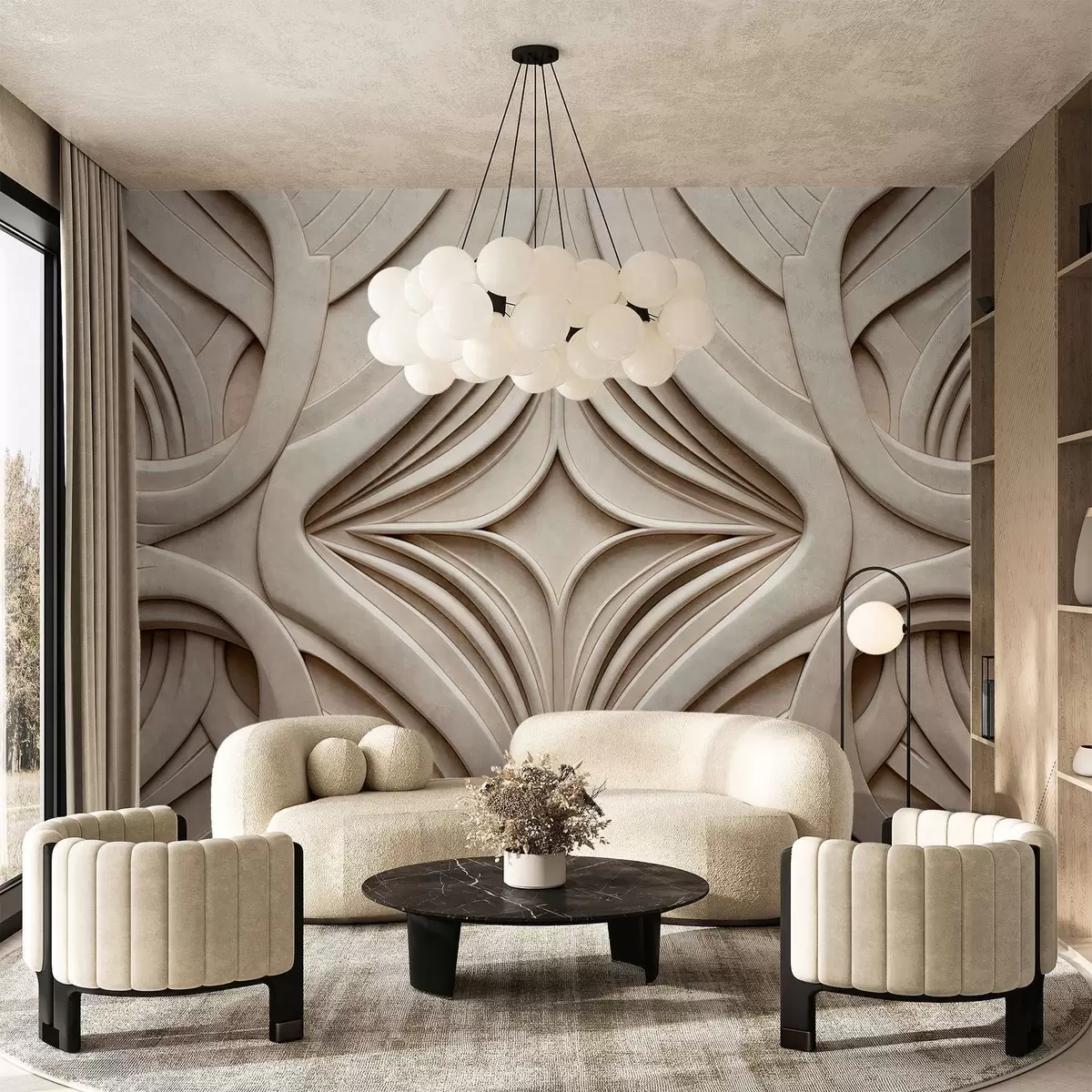Fotomurales Estampado geométrico abstracto simétrico con textura, color beige claro, estilo art déco, detalles intrincados Nr. w09473