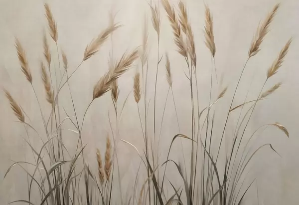 Fotomurales Campo con textura de trigo con espigas amarillas, fondo beige, iluminación natural, tonos cálidos, pinceladas detalladas Nr. w09493