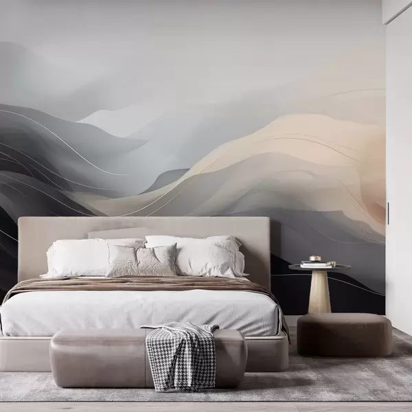 Fotomurales Olas abstractas y brumosas en tonos grisáceos y crema con líneas amarillas Nr. w09504
