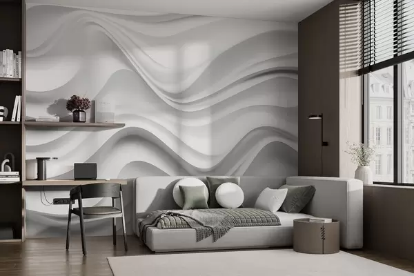 Fotomurales Composición abstracta en blanco y negro en 3D con ondas suaves. Nr. w09506