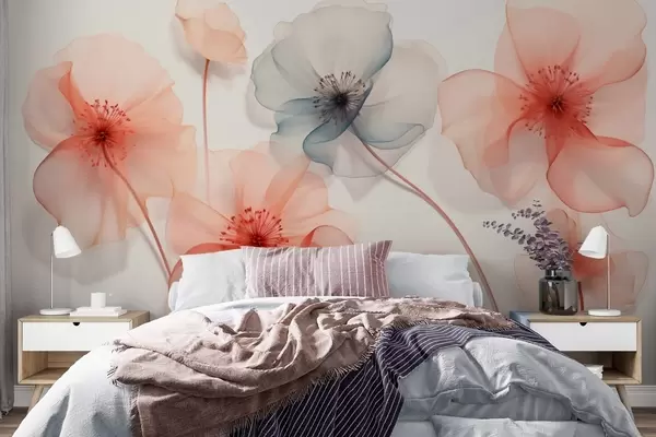 Fotomurales Flores translúcidas en tonos rojos y azules Nr. w09515