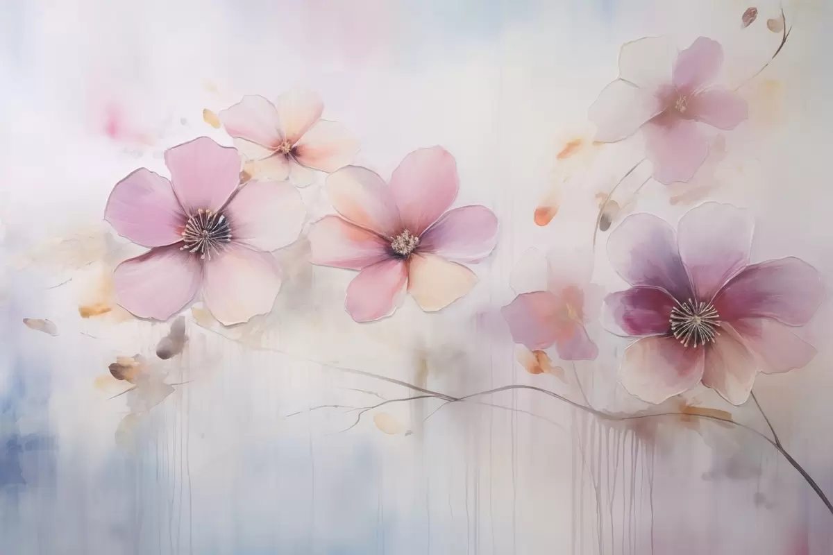 Fotomurales Rama con flores rosas en estilo acuarela Nr. w09522