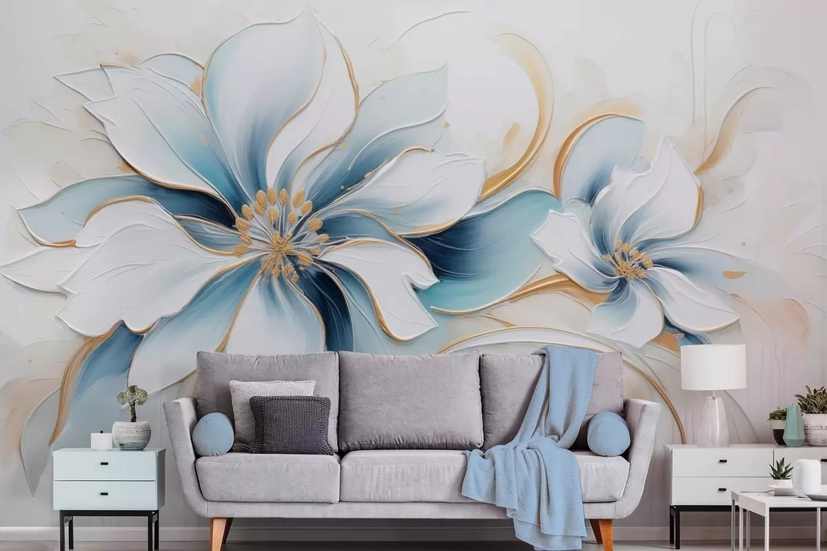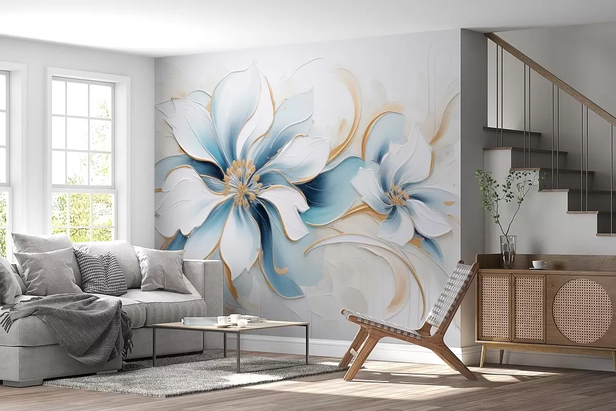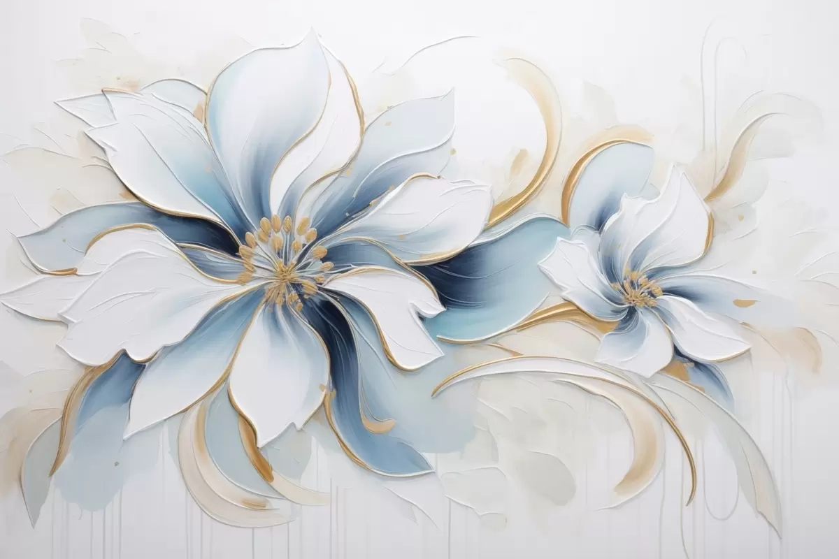 Fotomurales Abstracción pictórica con flores azules en estilo de pintura al óleo. Nr. w09524