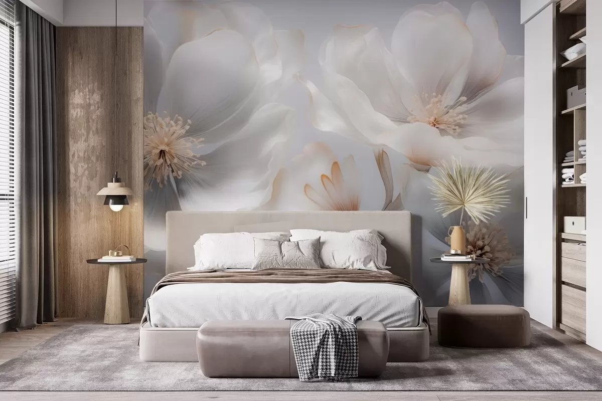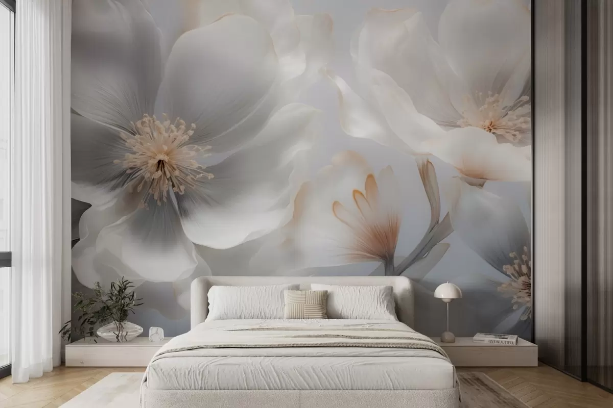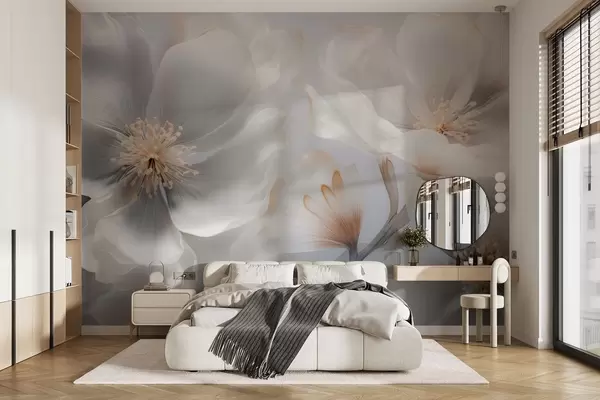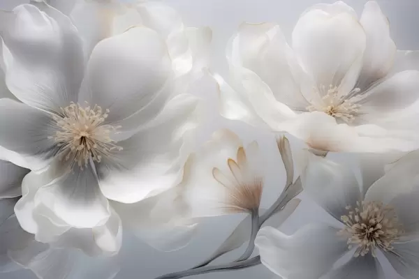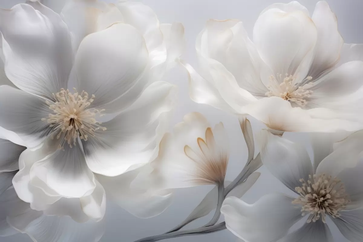Fotomurales Flores nacaradas en tonos beige grisáceo y crema lechoso. Nr. w09527