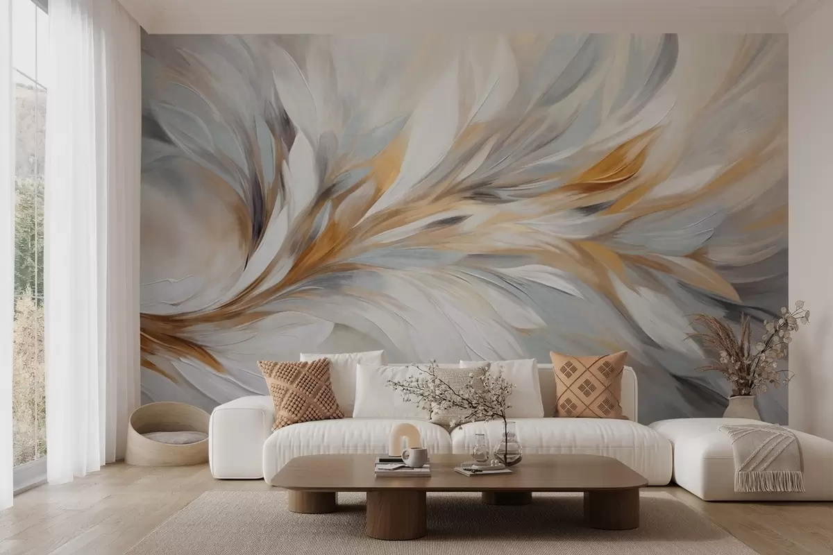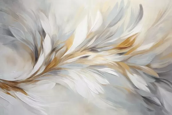 Fotomurales Estilo de pintura abstracta con pinceladas texturizadas en blanco, amarillo y gris sobre un fondo suave y claro. Nr. w09552