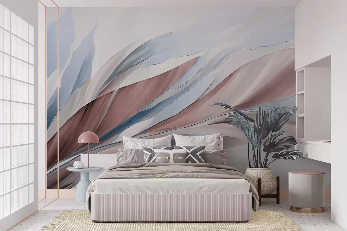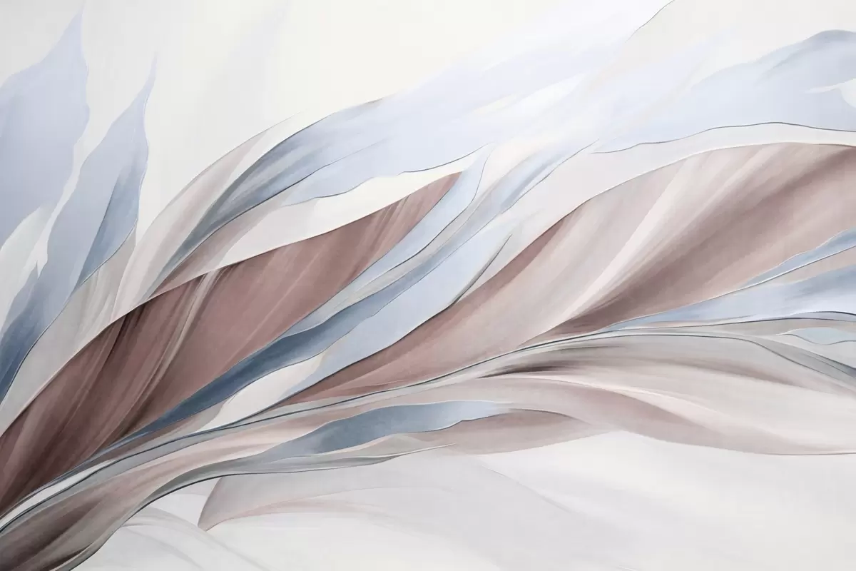 Fotomurales Ondas abstractas fluidas de color azul y marrón, con formas y líneas finas, sobre un fondo blanco, arte texturizado. Nr. w09585v1