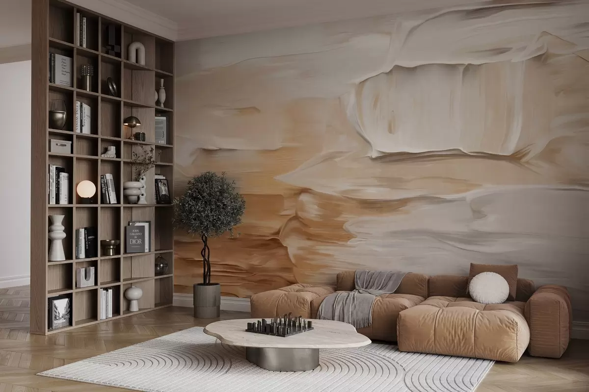 Fotomurales Imitaciones de pinceladas abstractas con textura en tonos cálidos y terrosos de beige, crema y marrón, arte moderno. Nr. w09588