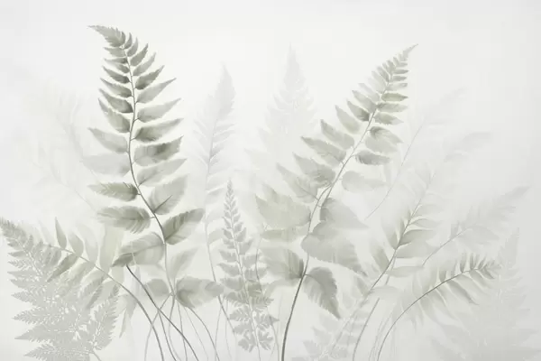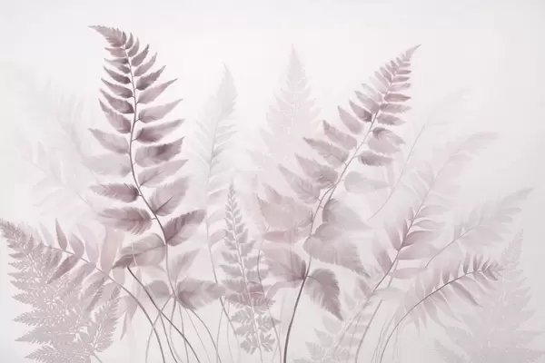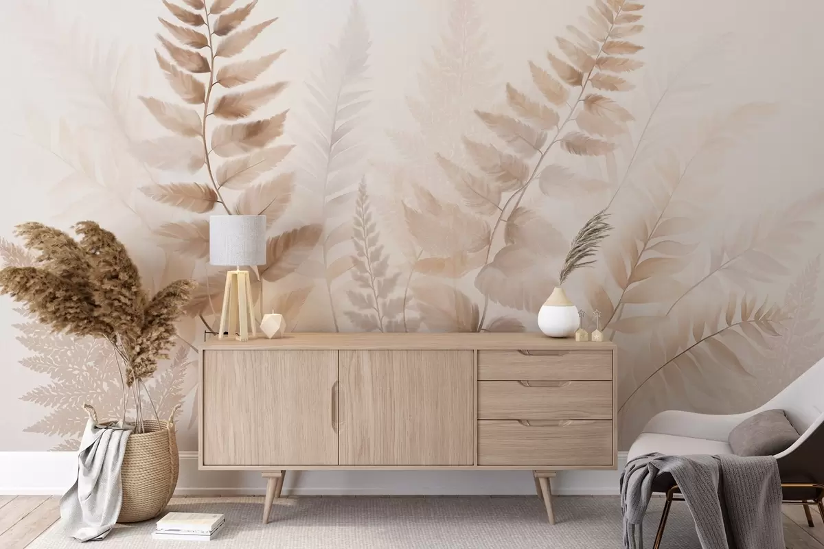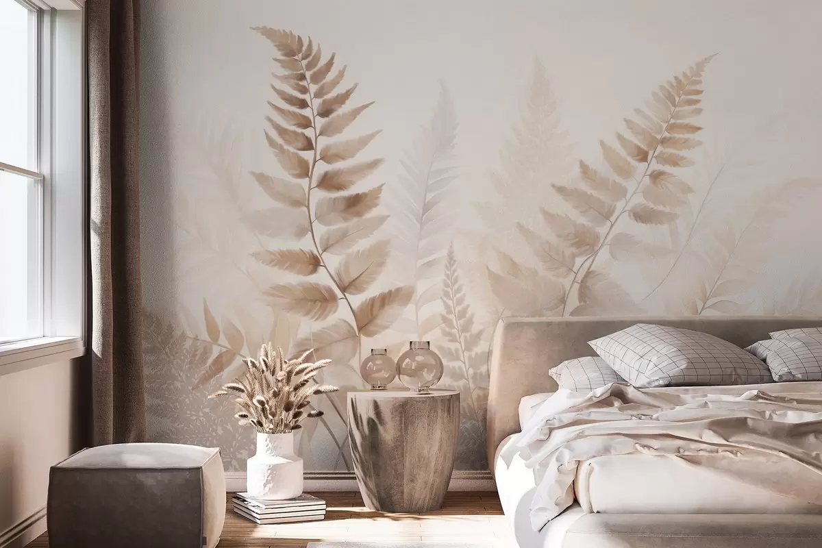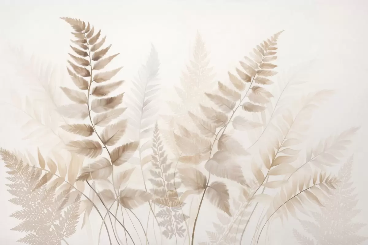Fotomurales Hojas secas de helecho con textura en varios tonos de marrón, con un fondo suave y claro en estilo acuarela. Nr. w09615