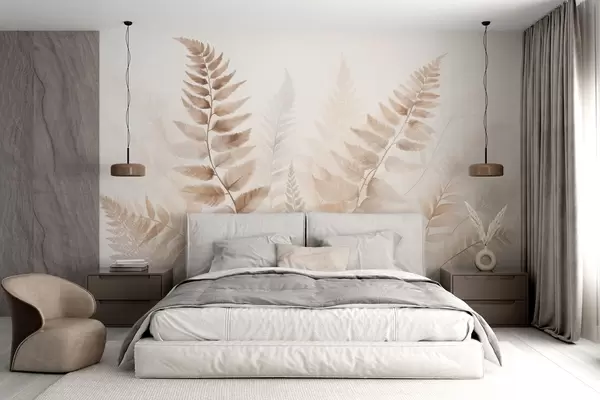 Fotomurales Hojas secas de helecho con textura en varios tonos de marrón, con un fondo suave y claro en estilo acuarela. Nr. w09615