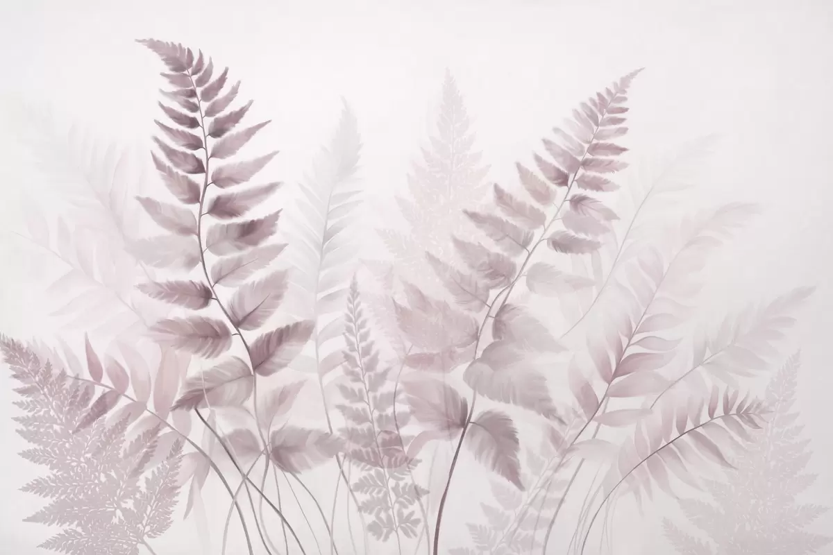 Fotomurales Hojas secas de helecho con textura en varios tonos de rosa, con un fondo suave y claro en estilo acuarela. Nr. w09615v2