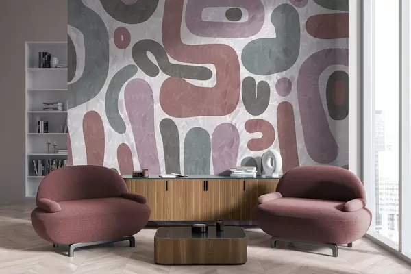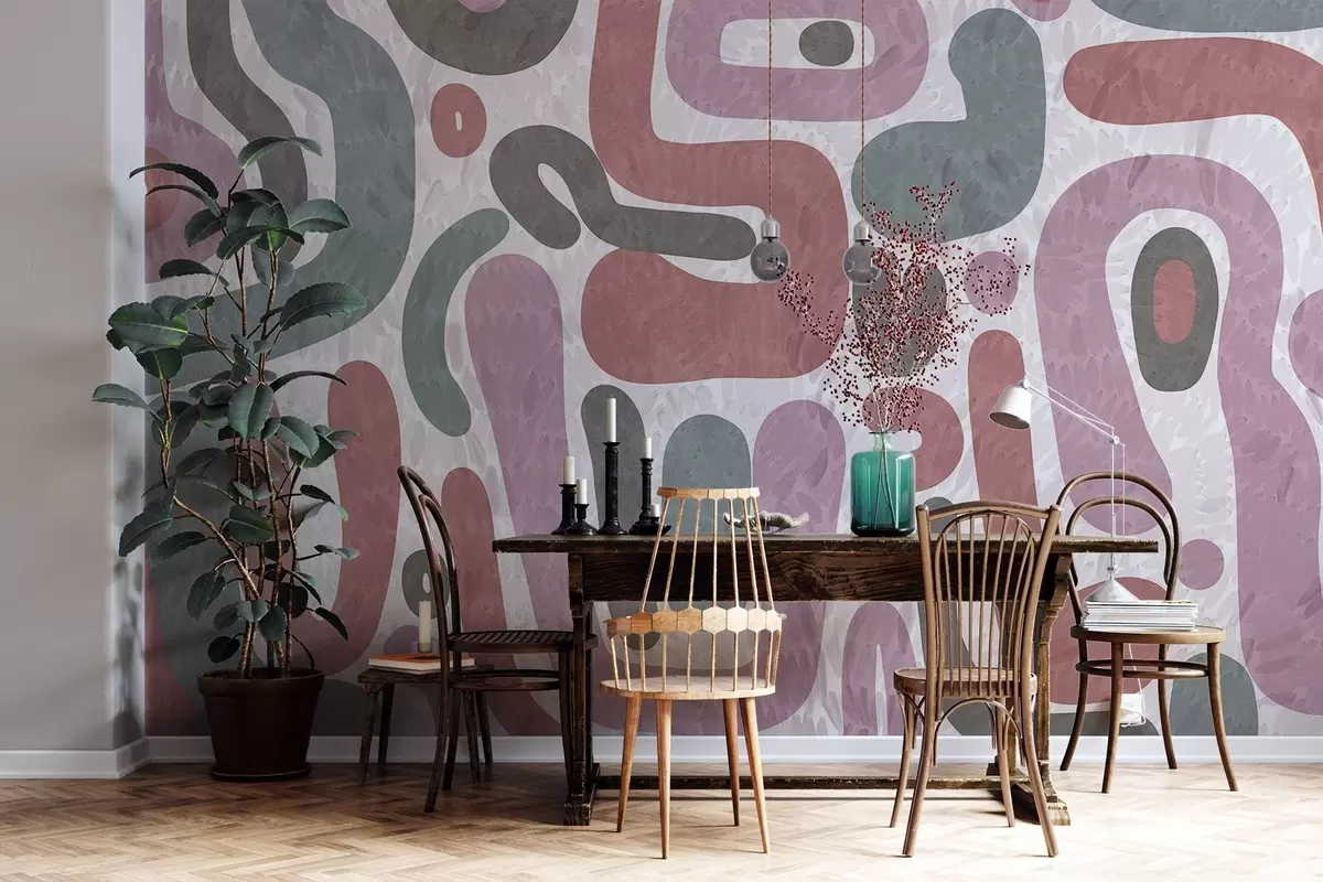 Fotomurales Formas abstractas con textura en tonos apagados de rosa, verde y gris, sobre un fondo con textura. Arte moderno. Nr. w09622