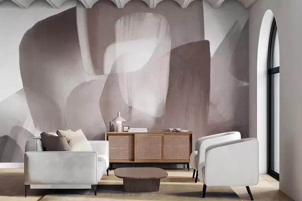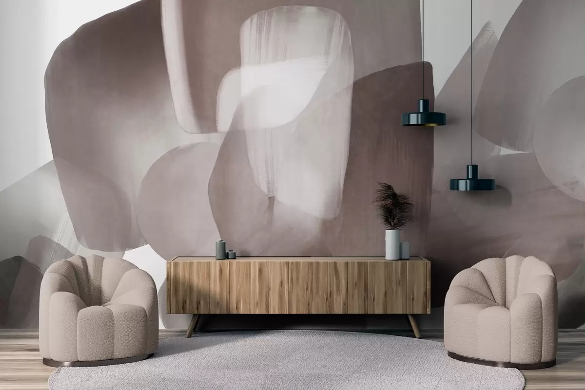 Fotomurales Formas abstractas con textura en colores burdeos y gris apagados, con bordes suaves y capas superpuestas. Nr. w09642v2
