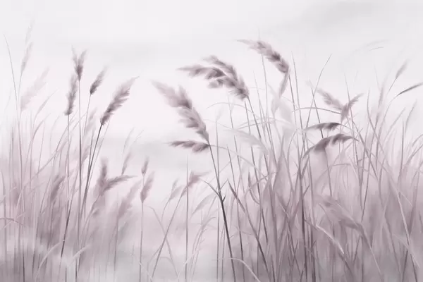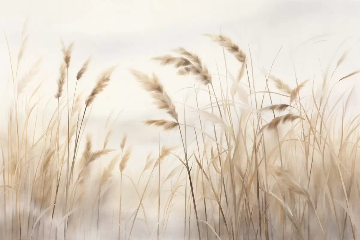 Fotomurales Hierba seca alta y texturizada con espigas de trigo en el campo sobre un fondo suave y pálido. Nr. w09648