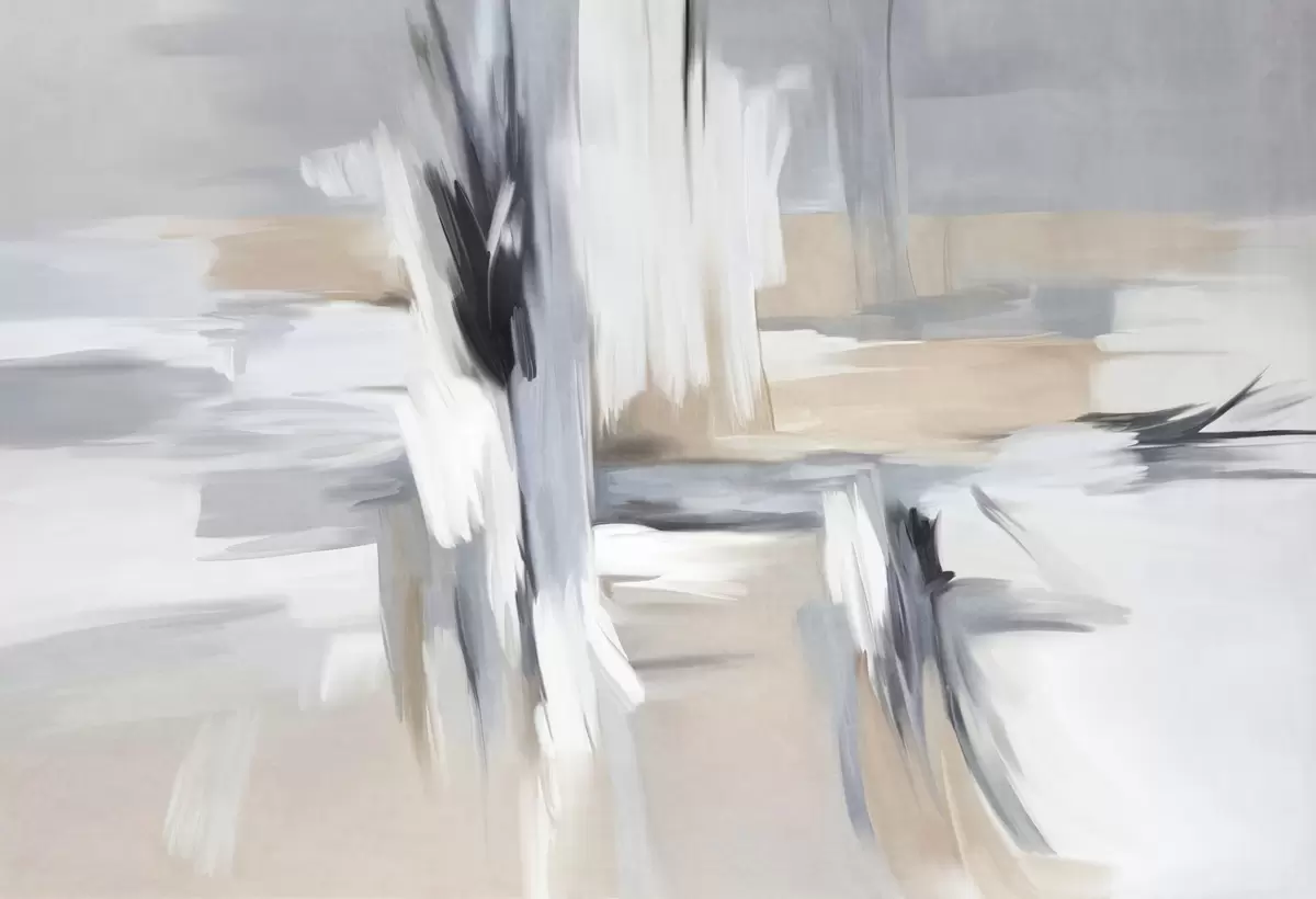 Fotomurales Estilo pictórico abstracto con textura y pinceladas en tonos blancos, grises y beiges. Nr. w09651