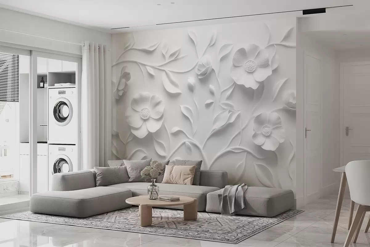 Fotomurales Adorno floral en relieve gris Nr. w09710