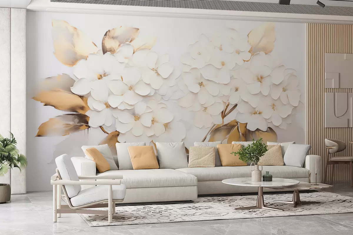 Fotomurales Lujosas hortensias con hojas amarillas Nr. w09711