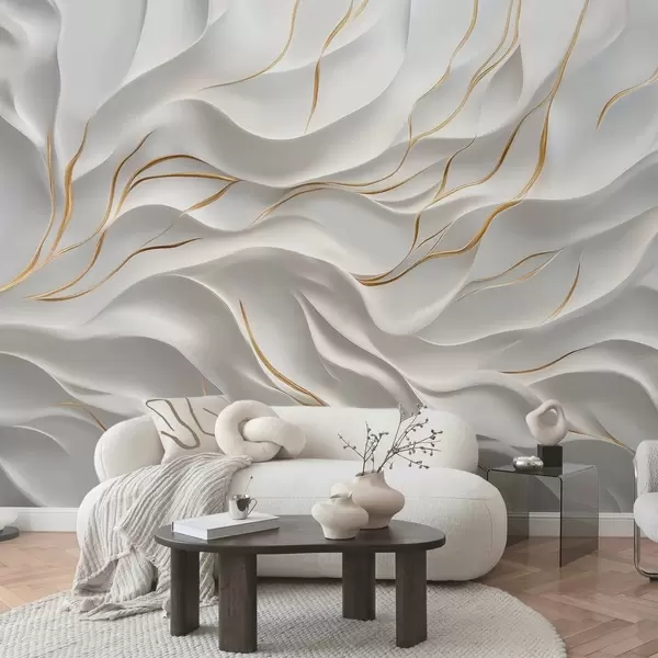 Fotomurales Ondas en relieve grises con detalles en amarillo Nr. w09724