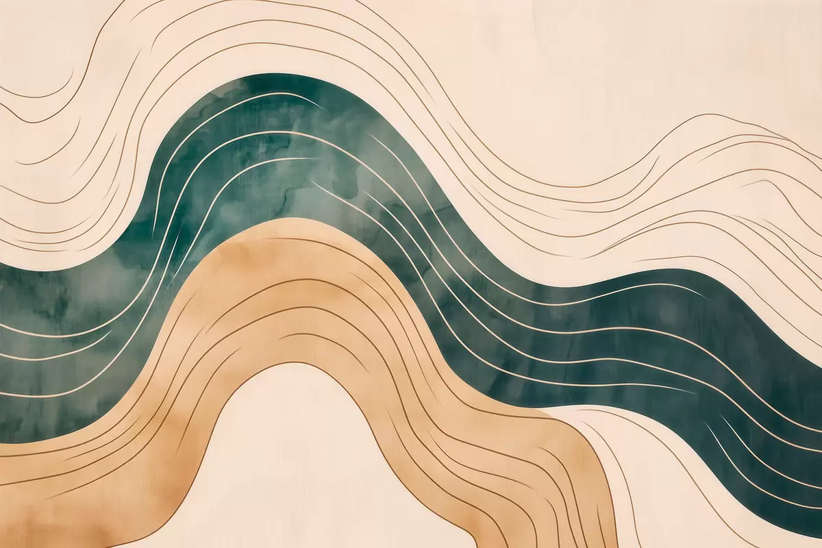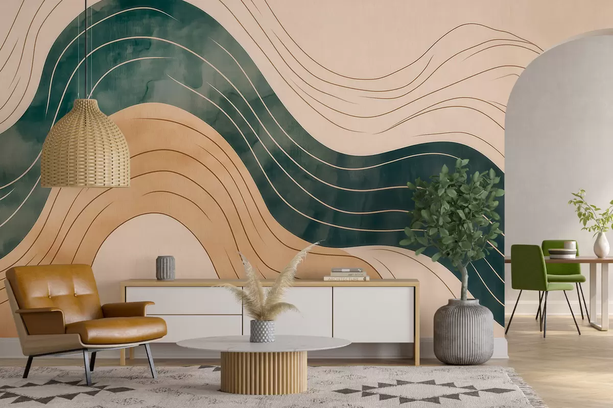 Fotomurales Líneas onduladas abstractas en tonos arena y esmeralda Nr. w09732