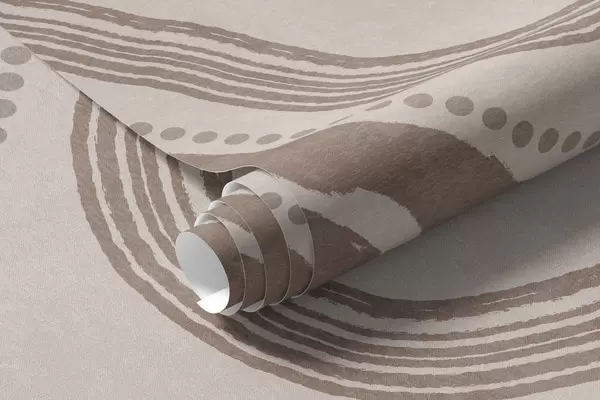 Fotomurales Líneas onduladas y puntos abstractos en marrón y beige, arte moderno con textura. Nr. w09747v1