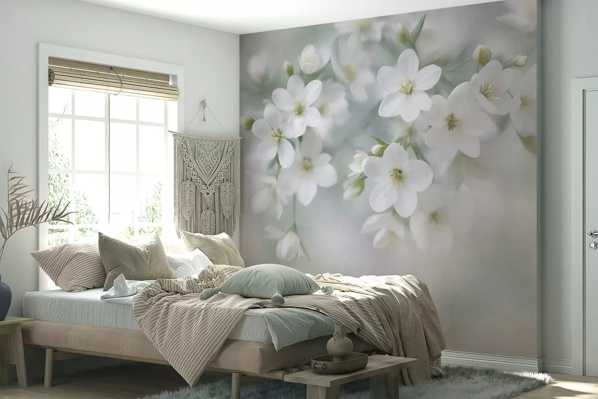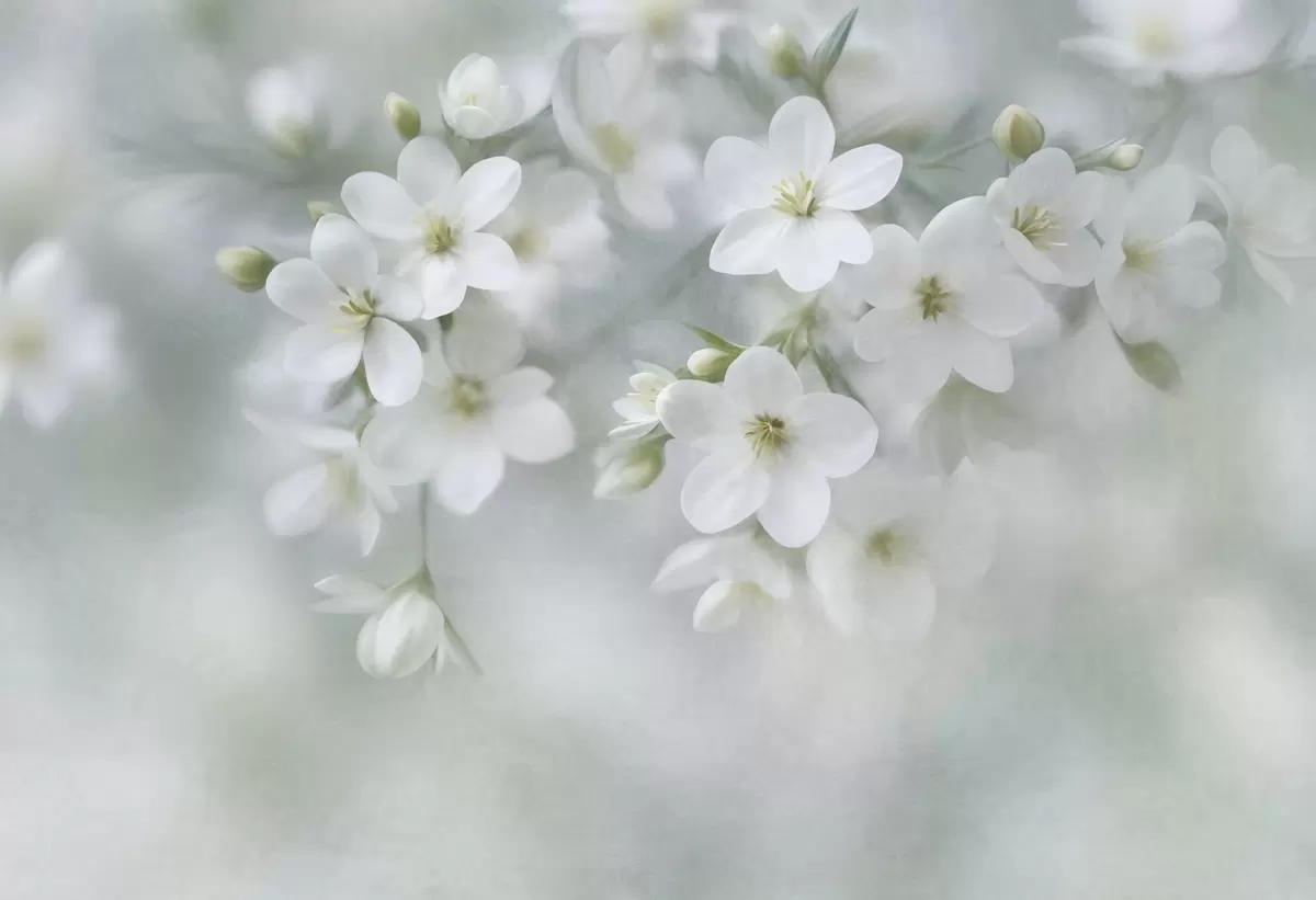 Fotomurales Flores blancas de textura delicada, difuminadas suavemente en el fondo Nr. w09759