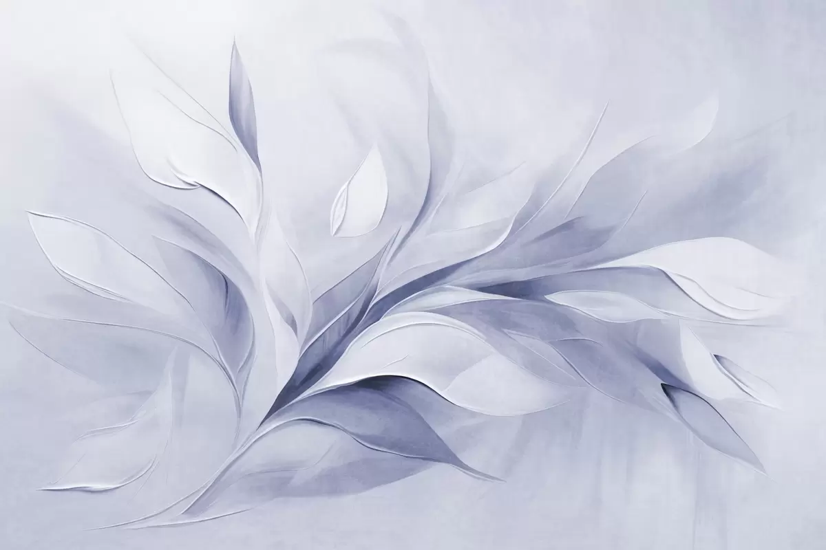 Fotomurales Estilo pictórico abstracto con textura de hojas fluidas en tonos azul pálido y blanco. Nr. w09765