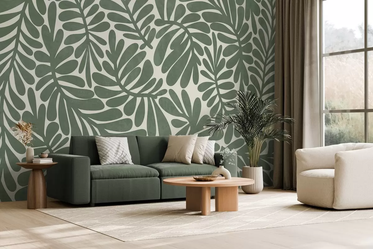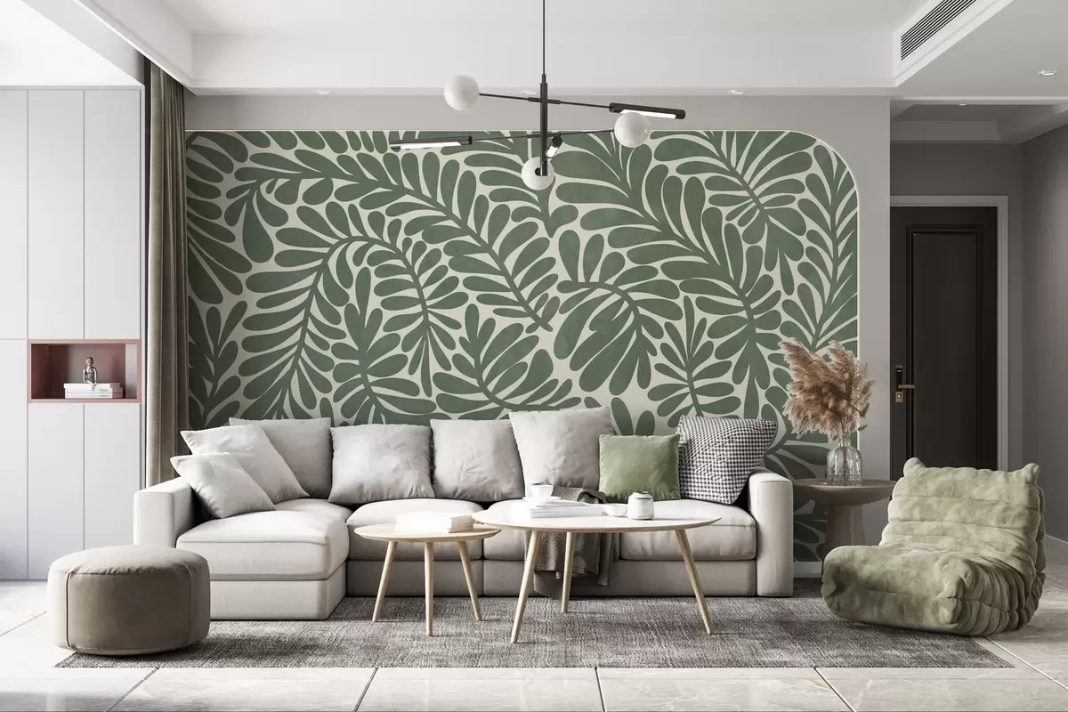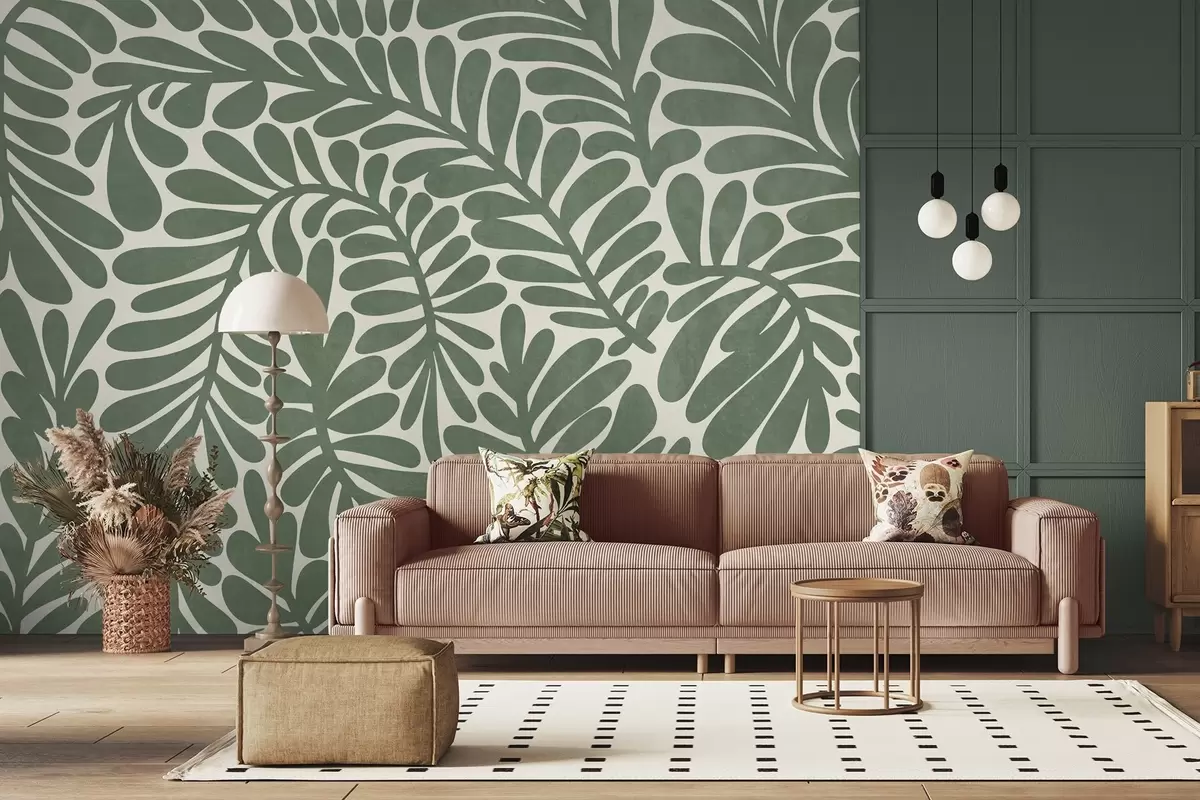 Fotomurales Hojas verdes estilizadas sobre un fondo claro, ilustración con textura Nr. w09775v2