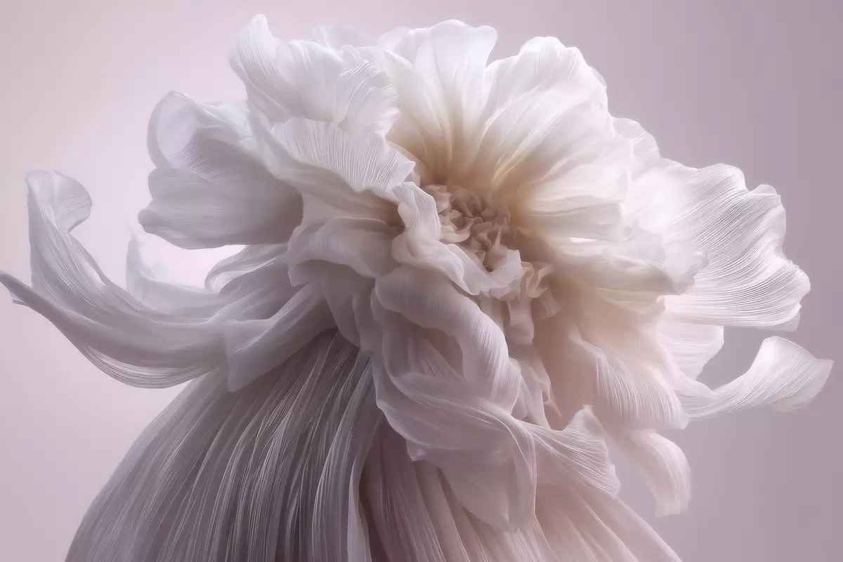 Fotomurales Flor de seda con volumen en tonos rosa pálido y beige Nr. w09809