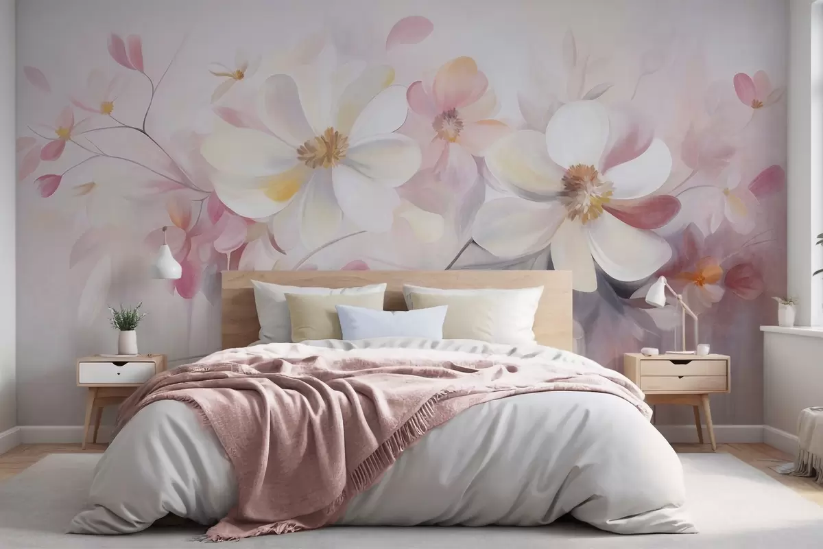 Fotomurales Arte texturizado con flores blancas y rosas de pétalos delicados, fondo abstracto y suave Nr. w09811
