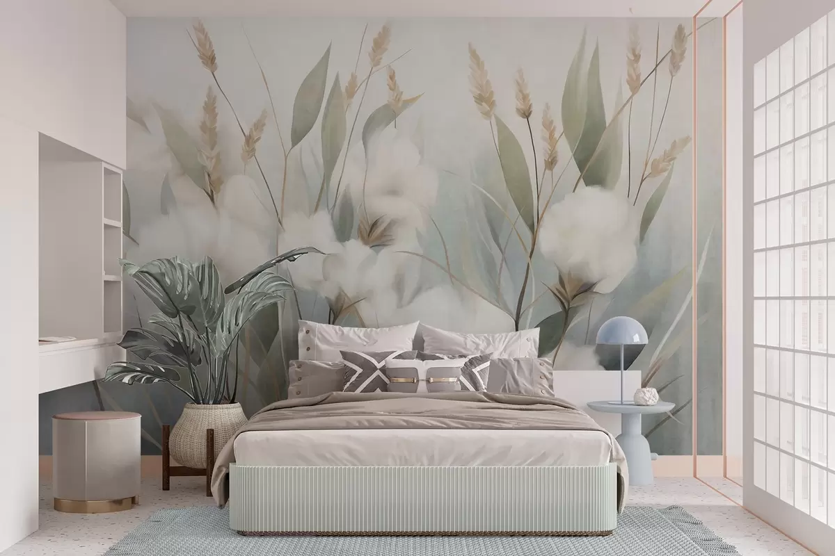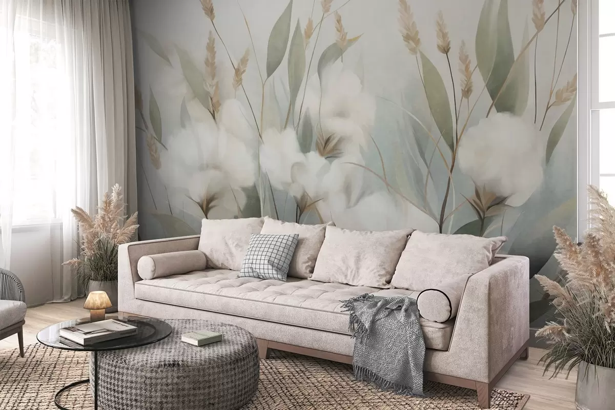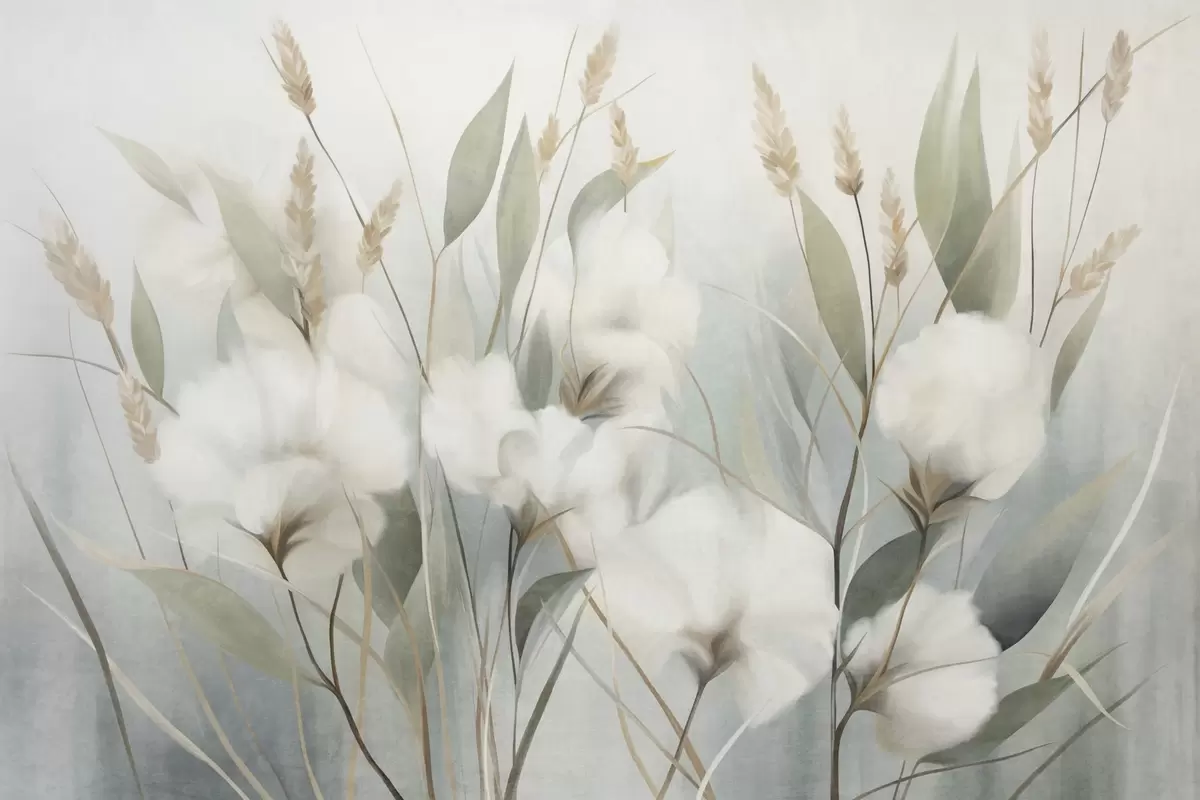 Fotomurales Flores secas blancas y hierba alta sobre un fondo suave y tenue, pintadas en estilo impresionista Nr. w09823