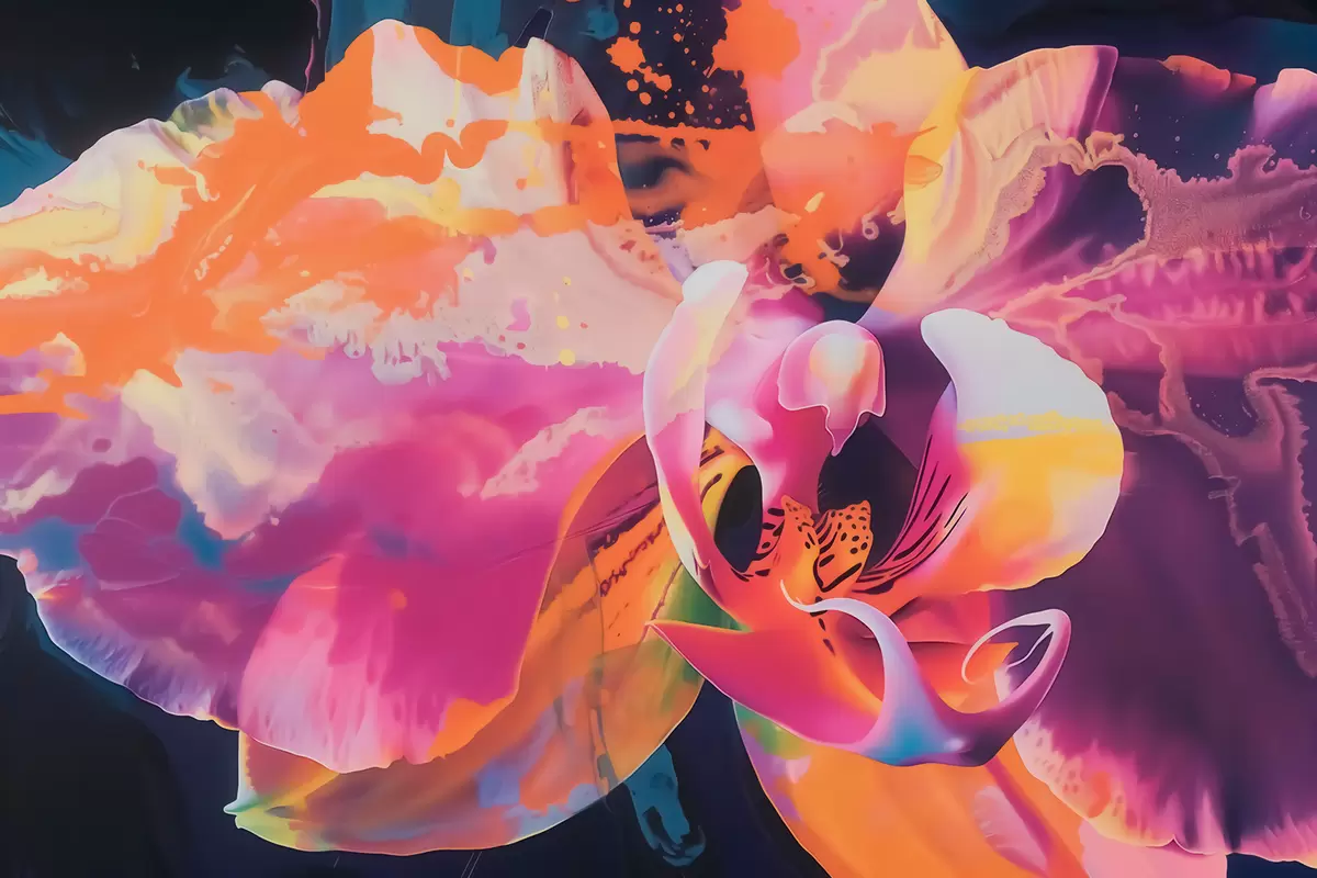 Fotomurales Una flor de orquídea abstracta y llena de vida, con colores intensos y formas dinámicas, en estilo acuarela Nr. w09855