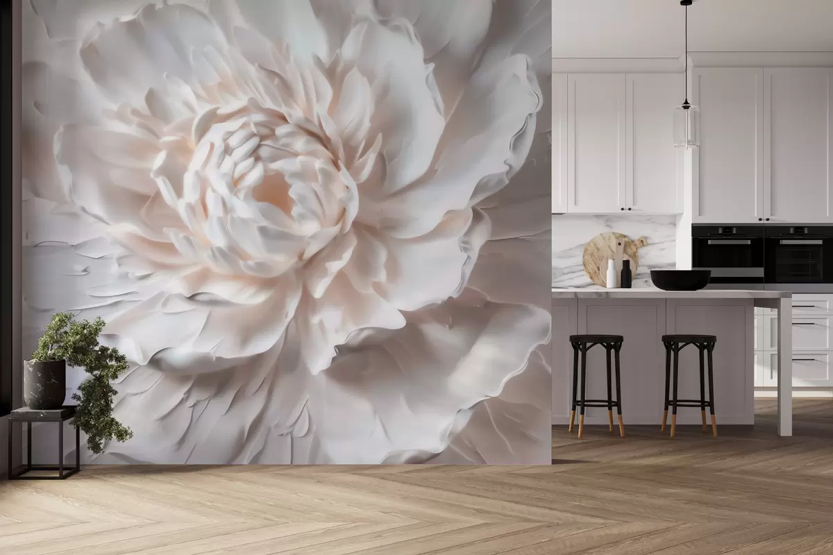 Fotomurales Una delicada flor en bajorrelieve con pétalos lisos en tonos claros Nr. w09861