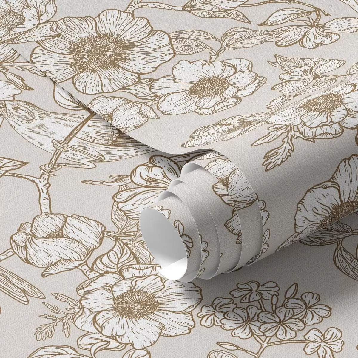 Papel tapiz Pájaros pintados en ramas y flores Nr. a00017