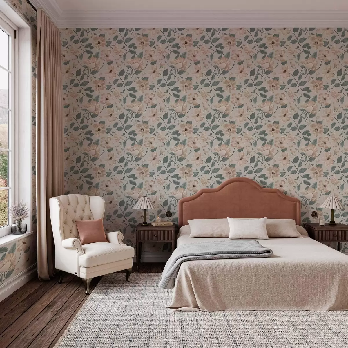 Papel tapiz Delicado arreglo floral en tonos pastel Nr. a00043