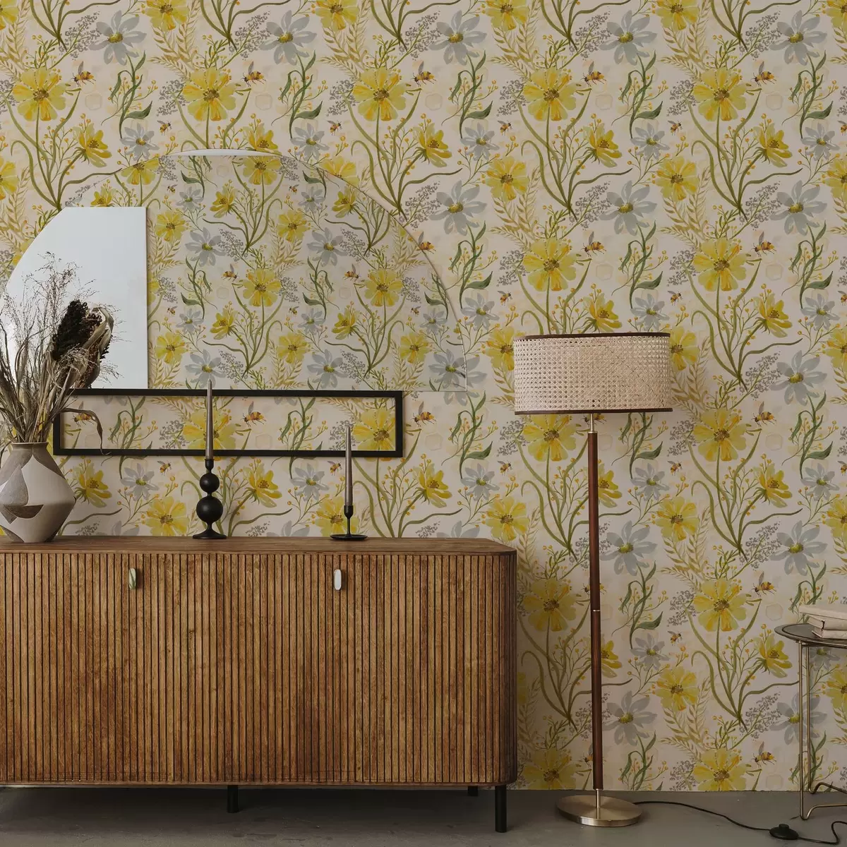 Papel tapiz Brillante composición floral en color amarillo Nr. a00045