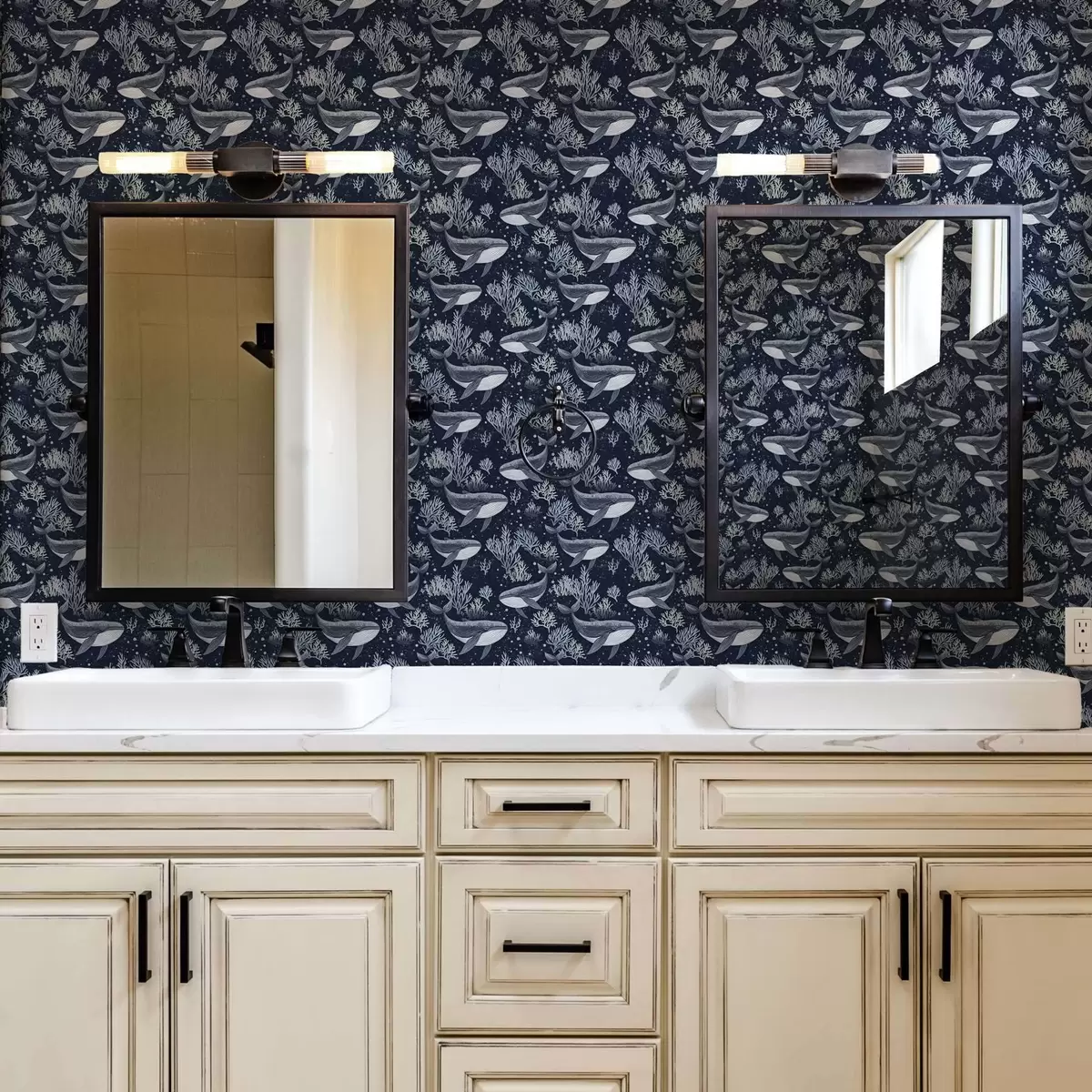 Papel tapiz Ballenas y corales sobre fondo azul oscuro Nr. a00116v1