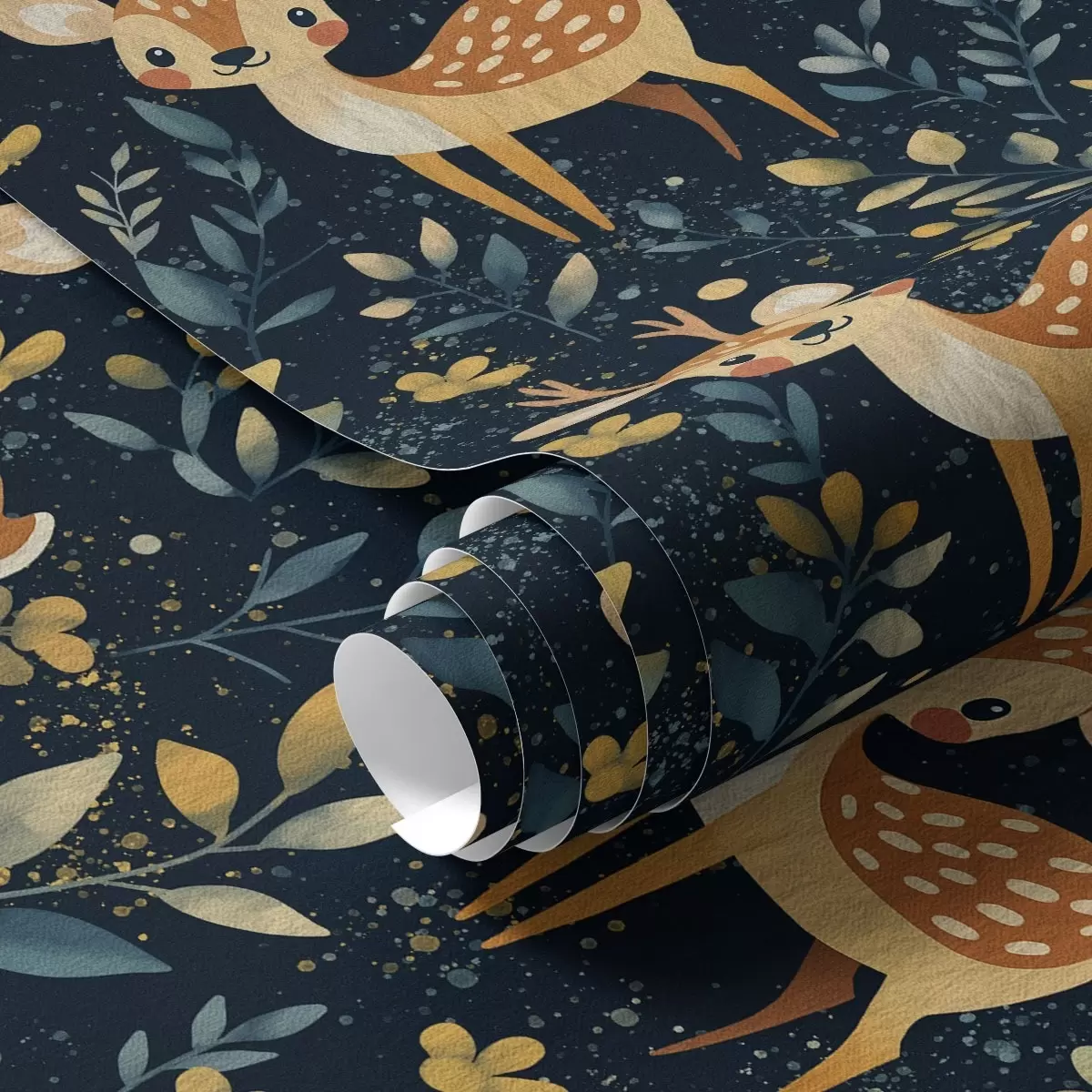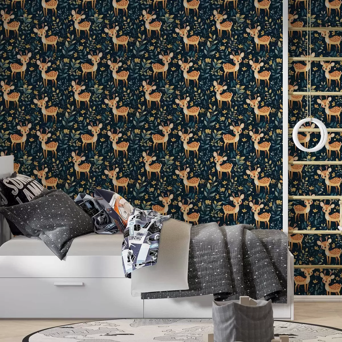 Papel tapiz Cervatillo en un bosque oscuro con hojas amarillas Nr. a00124