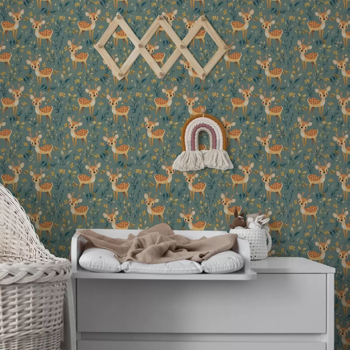 Papel tapiz Cría de ciervo en el bosque con hojas amarillas Nr. a00124v1