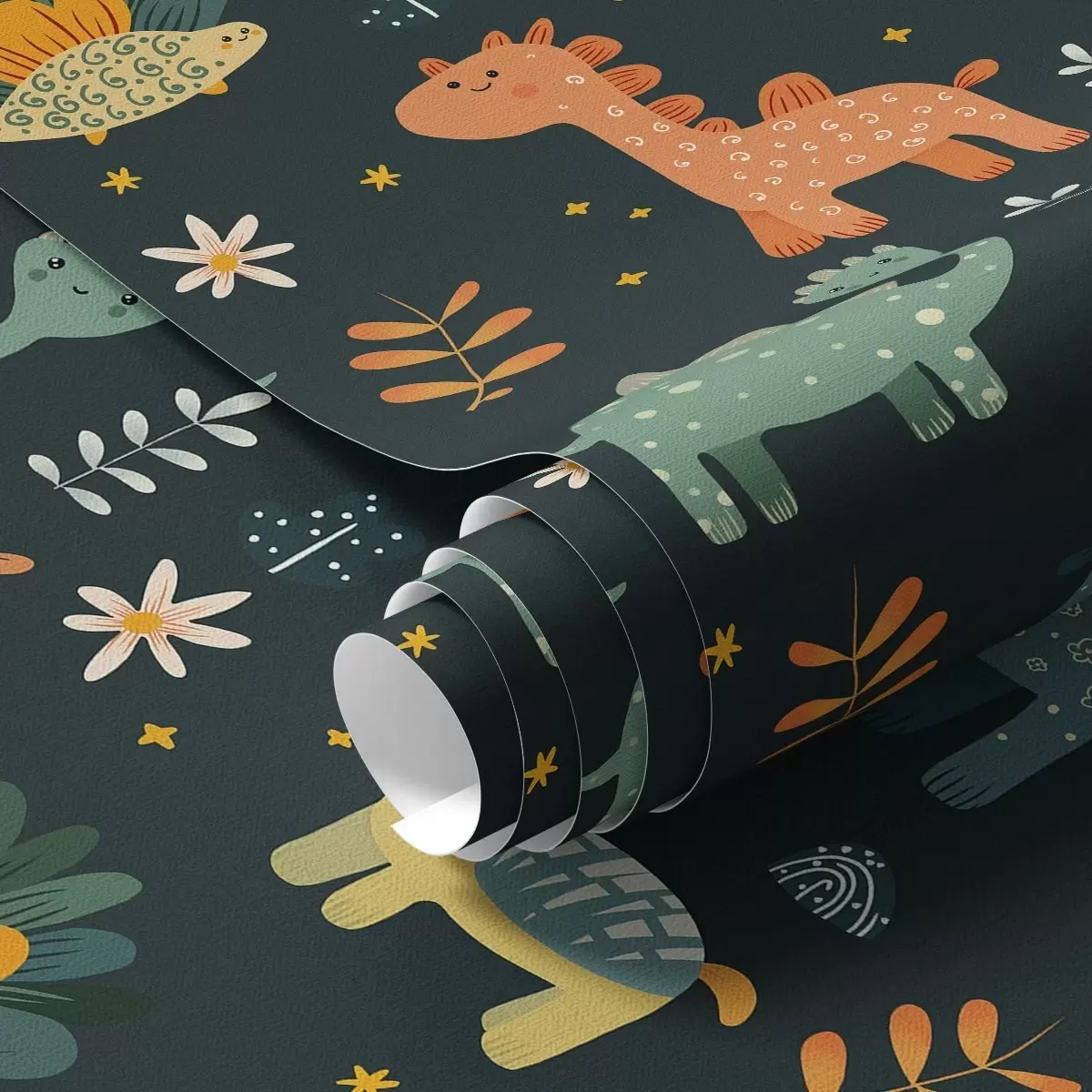 Papel tapiz Divertidos dinosaurios en colores pastel sobre fondo oscuro Nr. a00125v2