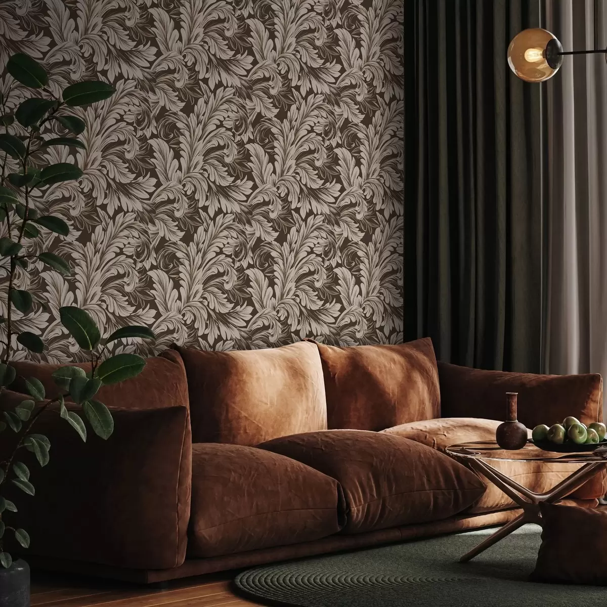 Papel tapiz Motivo barroco con hojas sobre fondo oscuro Nr. a00135v5