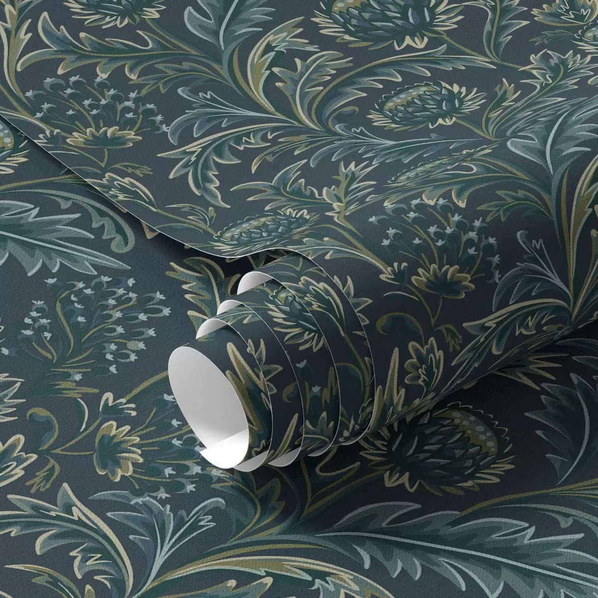 Papel tapiz Motivo floral verde oscuro con alcachofas Nr. a00186