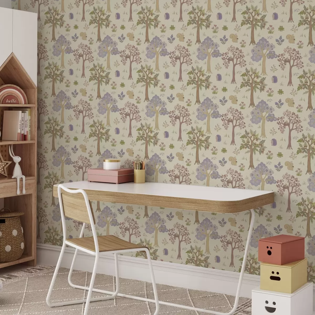 Papel tapiz Bosque de hadas con animales de estilo infantil Nr. a00264
