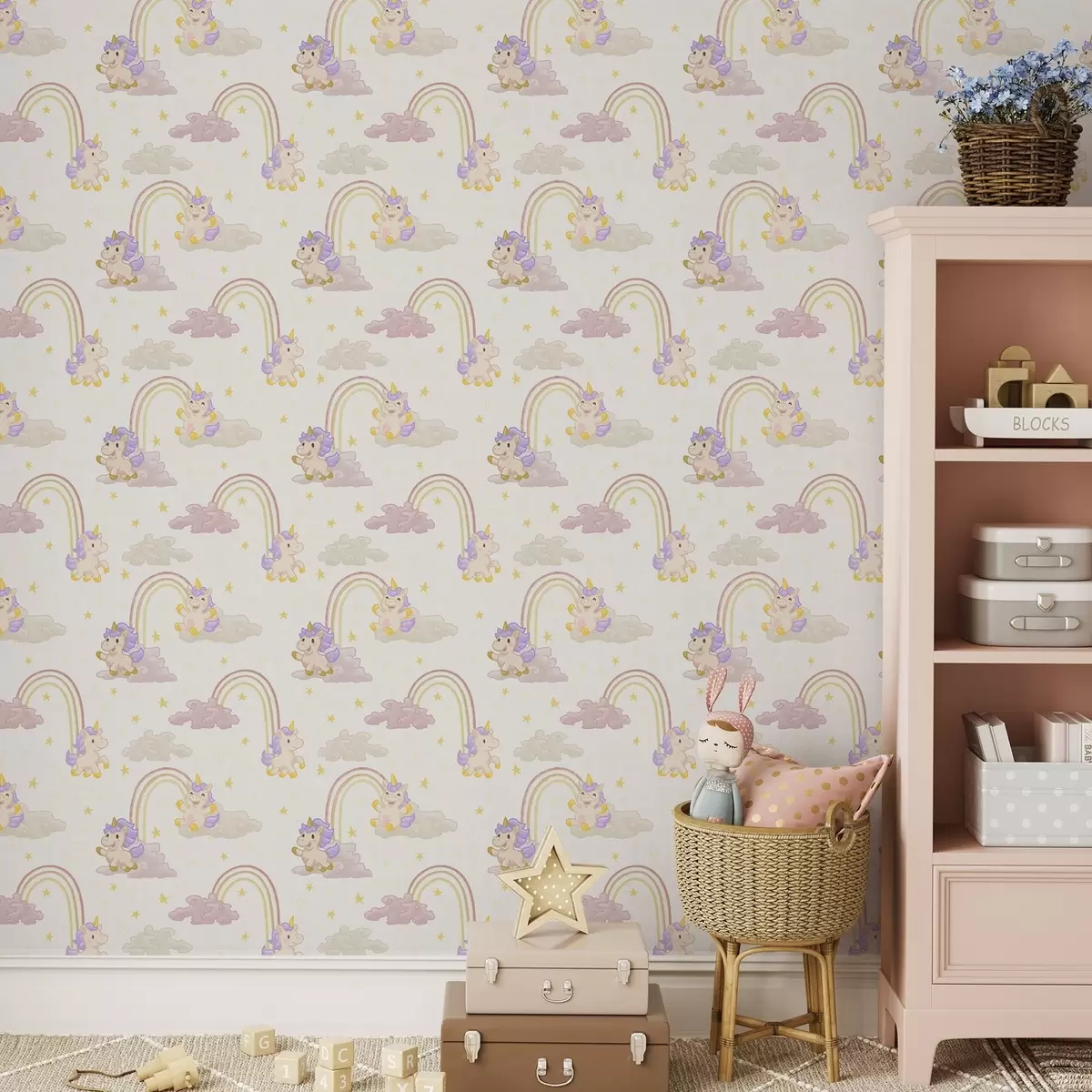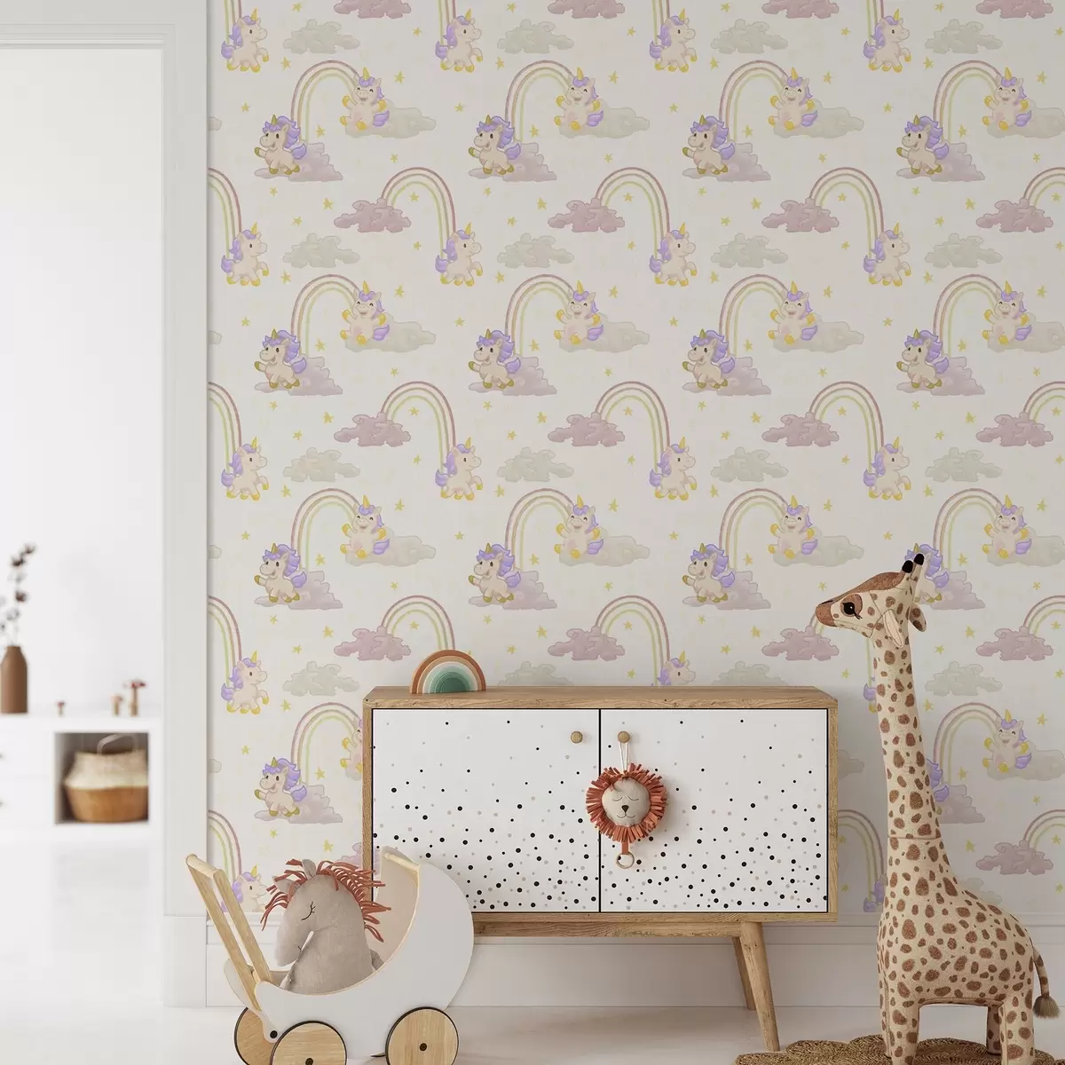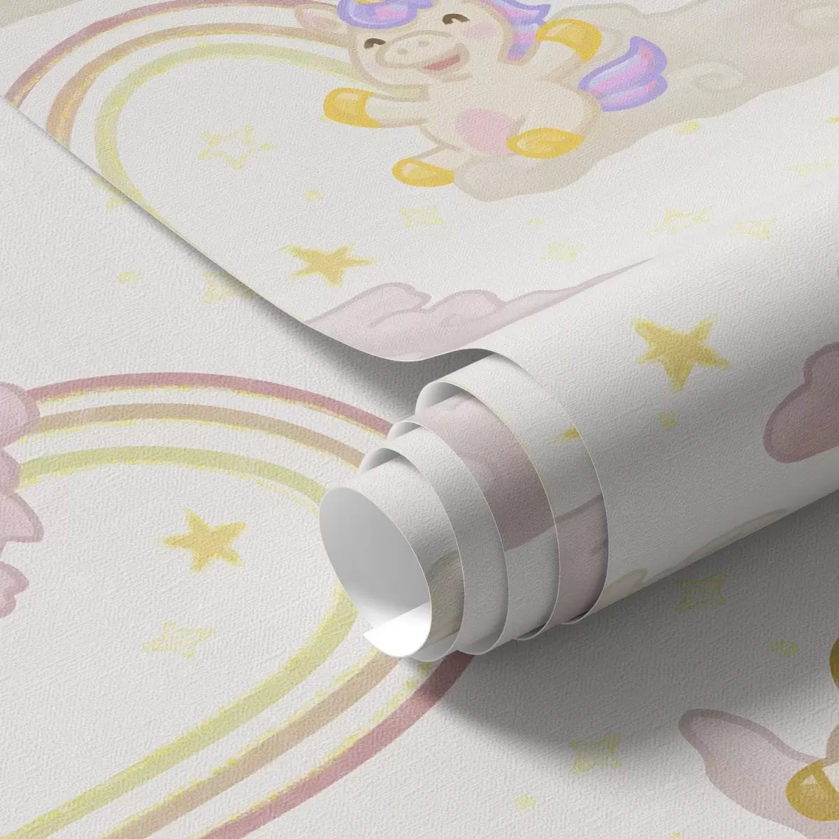 Papel tapiz Bonito unicornio con arco iris y estrellas Nr. a00339