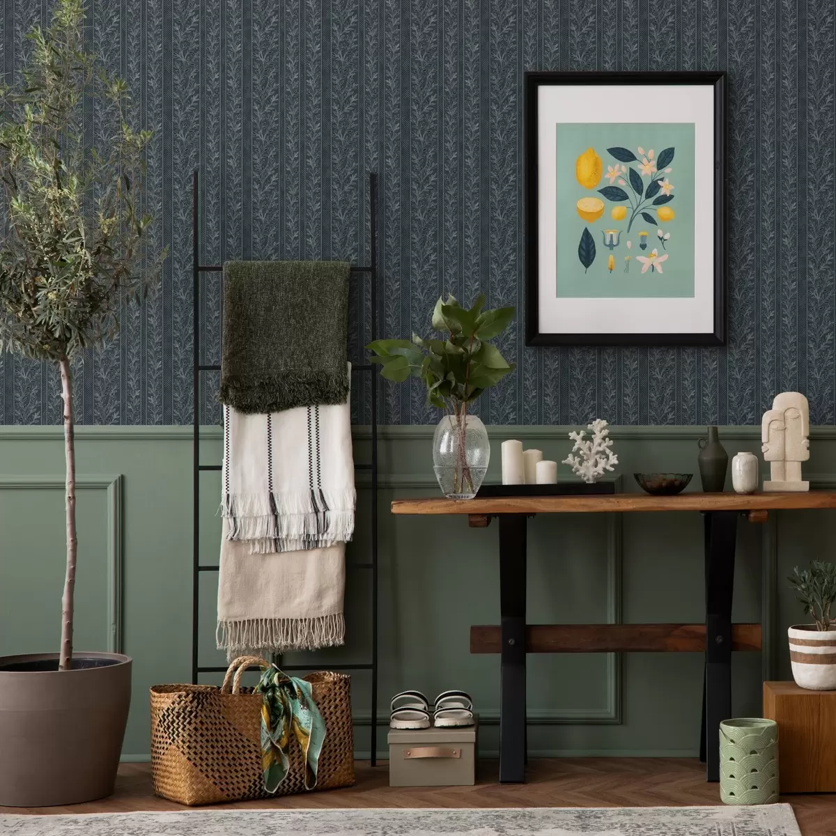 Papel tapiz Motivo de rayas con ramitas sobre fondo azul Nr. a00425